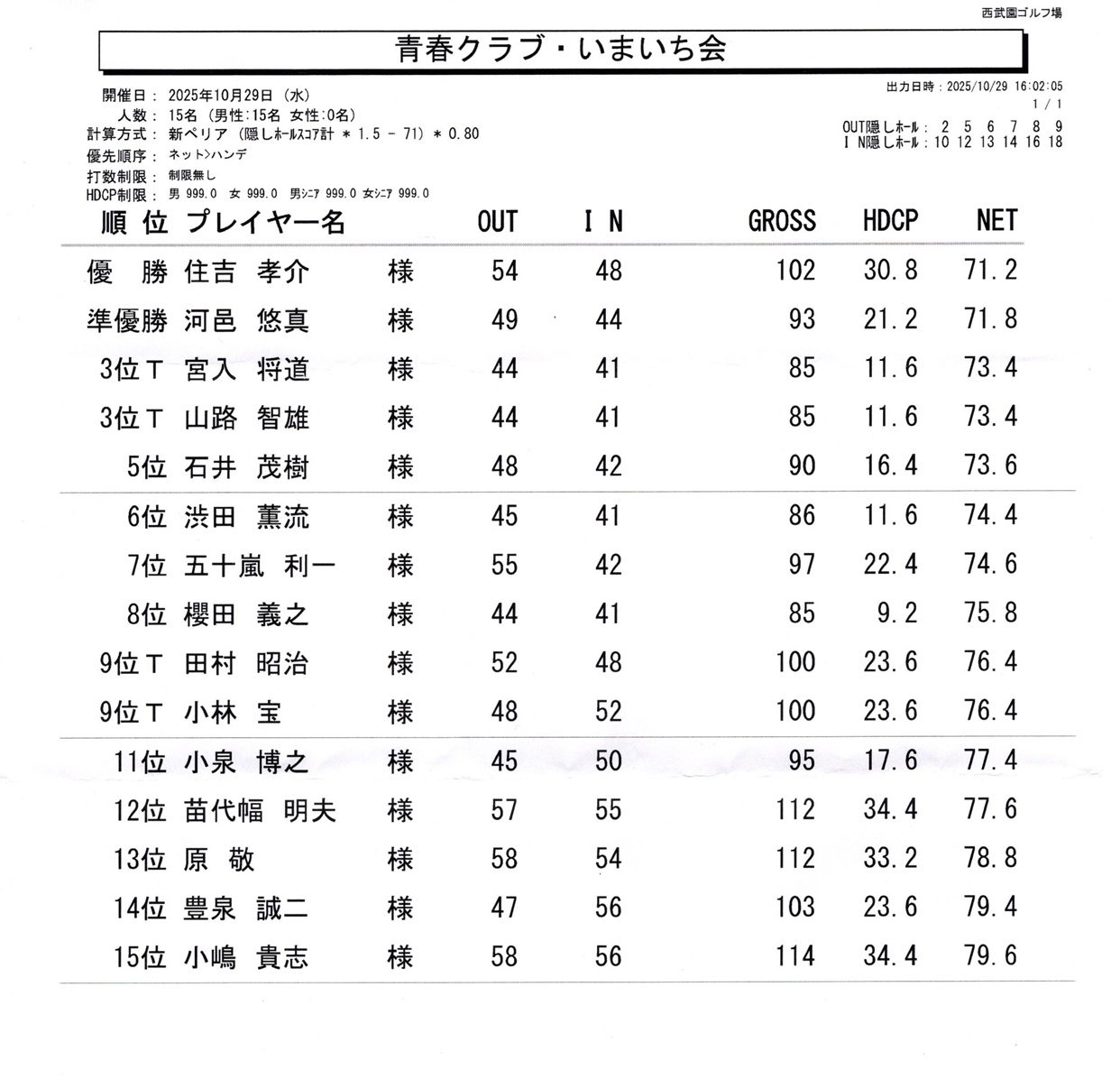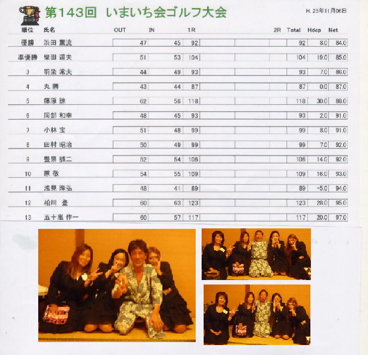 尚次回は西武園ゴルフ場シリーズ第7回として来年3月頃水曜日を予定しています.お楽しみに。